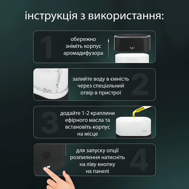 Ультразвуковая технология работает мягко+почти неслышно. Воздух становится легче. Дышать приятнее. Кожа не стягивается. Сон приходит быстрее. Добавь пару капель эфирного масла — и увлажнитель легко превращается в арома дифузор