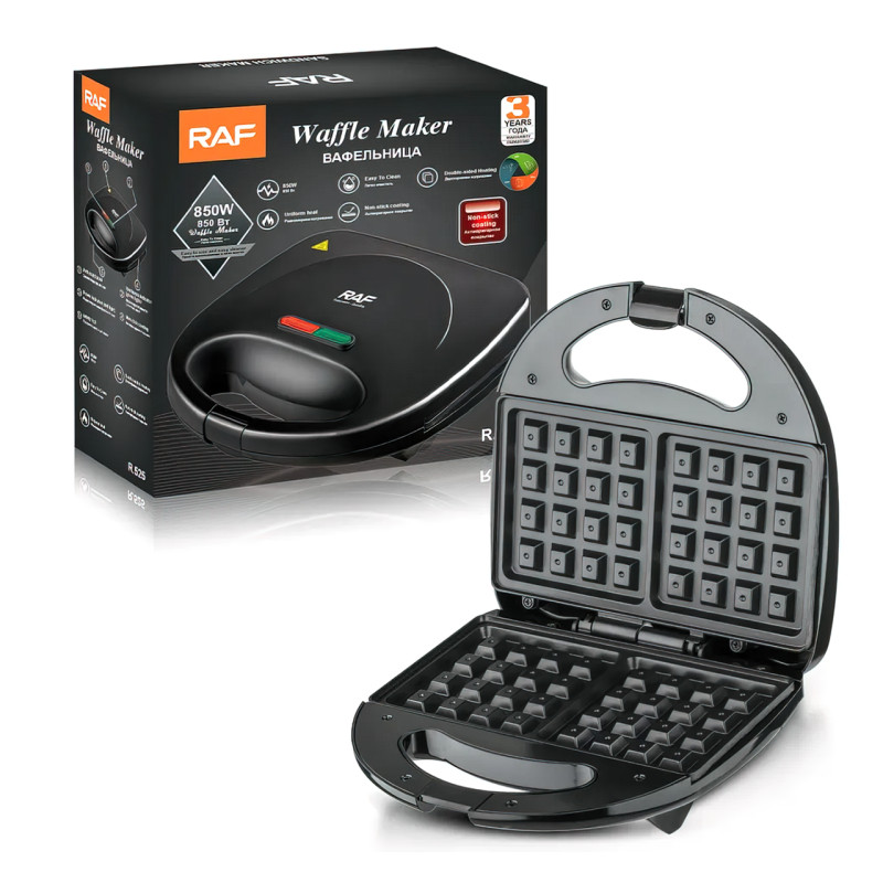 Вафельница электрическая RAF R.525, 850 Вт, с антипригарным покрытием, для бельгийских вафель, на 2 отделения