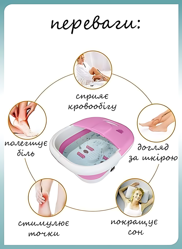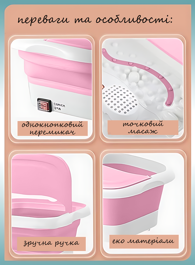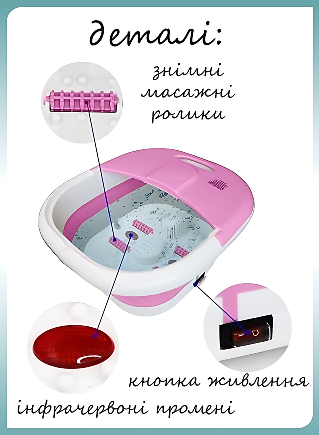 И нет, это не обычный "тазик" из прошлого. Это маленький SPA-курорт, который поселится у тебя дома. Она нагреет воду сама! (забудь про танцы с чайником) Будет держать её тёплой до самого конца. А пузырьки будут щекотать ноги, как газировка с трубочкой. Вибрация? Представь, что усталость просто разбежалась по углам, как...тараканы при включённом свете. А роликовый массаж — это будто ты прогулялся босиком по морской гальке. Только без риска уколоться ракушкой или стеклом.