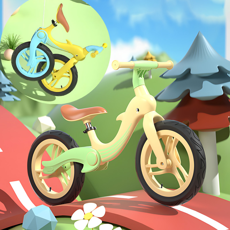 - Веселый дизайн с дельфином: Уникальный дизайн с дельфином делает велобег привлекательным и интересным для детей, что мотивирует их к активным играм на свежем воздухе;