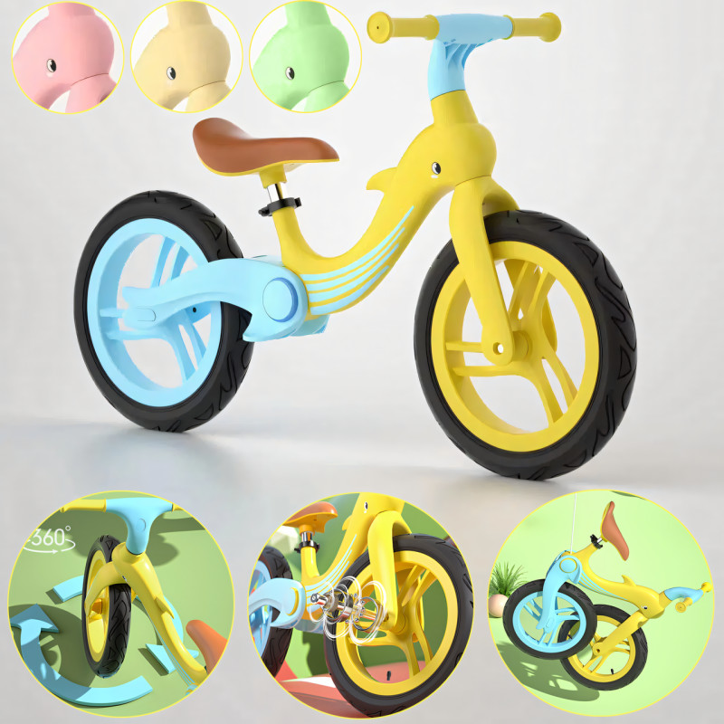 Велобег с дельфином BA03, складной беговел от 2 до 5 лет, надувные колеса 12'', нагрузка до 40 кг, вес 4 кг