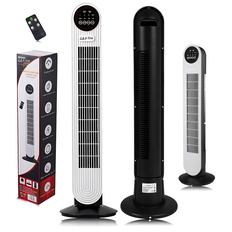 Вентилятор башенный напольный Zepline ZP-139, 500 Вт, 3 скорости, электронное управление, пульт ДУ, вращение