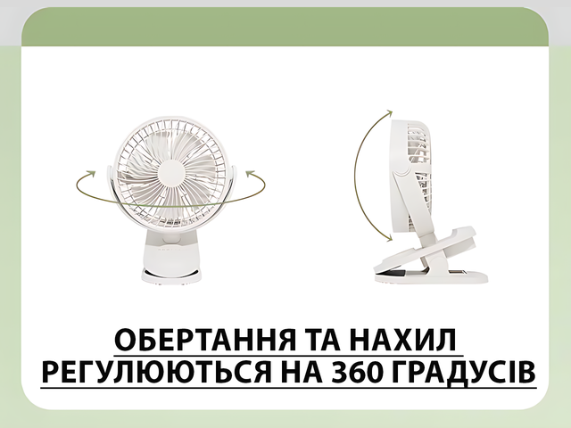 Вентилятор мини Fan LY-850 с прищепкой, 360° наклон и поворот, таймер 2/6/9 ч, аккумулятор 1800 мАч, 3 скорости, USB, настольный/настенный, белый и хаки