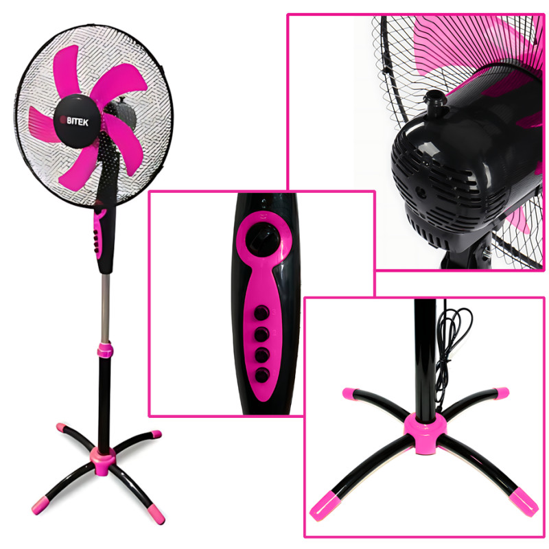 Вентилятор напольный BITEK BT-1630 ⌀40 см, 100 Вт, 3 скорости, 5 лопастей, поворот, наклон, регулировка высоты, пластиковые лопасти, металлическая решётка + таймер 30 минут