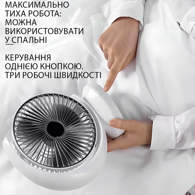 Вентилятор настольный портативный A2, 180° поворот, аккумулятор 1200 мАч, 3 скорости, бесшумный, USB, 4.5 Вт