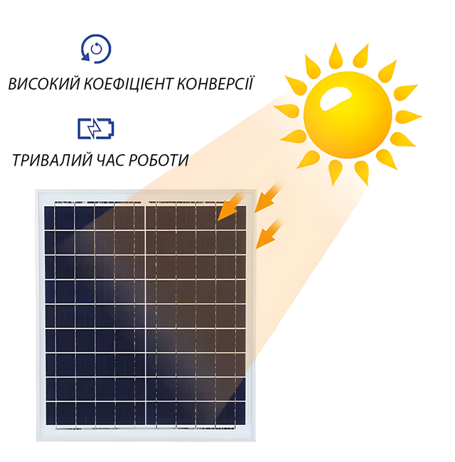 - Солнечная панель: 12 Вт, поликремниевая, 9 В