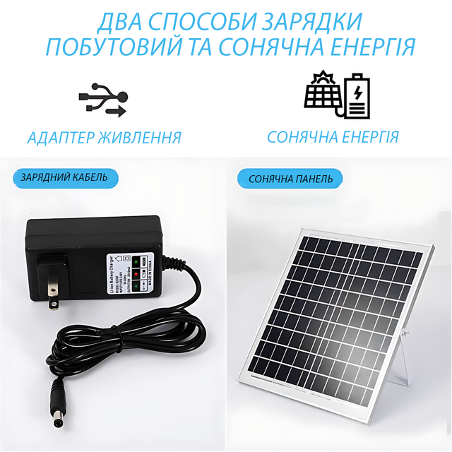 - ???? Универсальная зарядка — от сети или солнечной панели.