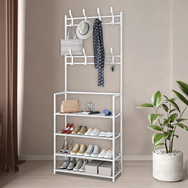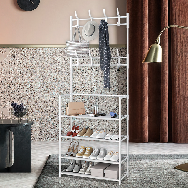 - Под одеждой на полках вешалки удобно хранить обувь, аксессуары и другие предметы;
