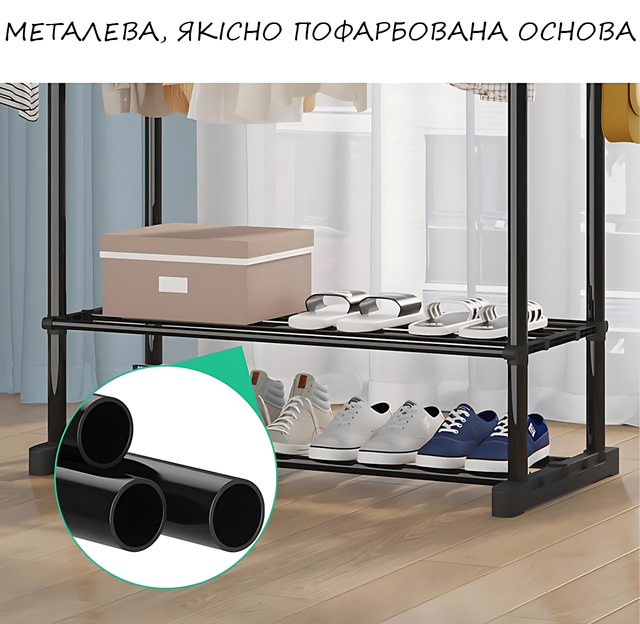 - Двухъярусные полки для хранения: Стеллаж для одежды с двухъярусными полками для ежедневного хранения одежды и обуви. Удобно для организации коробок, ботинок, корзин, сумок и зонтов. Делает ваш дом чище и аккуратнее;