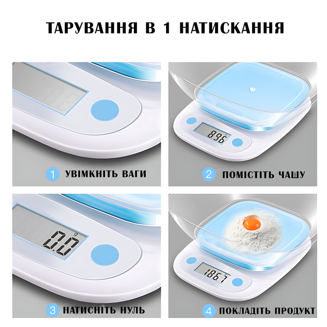 - Точность до 1 грамма. Эти весы не ошибаются, даже если вы решите взвешивать самые лёгкие продукты!