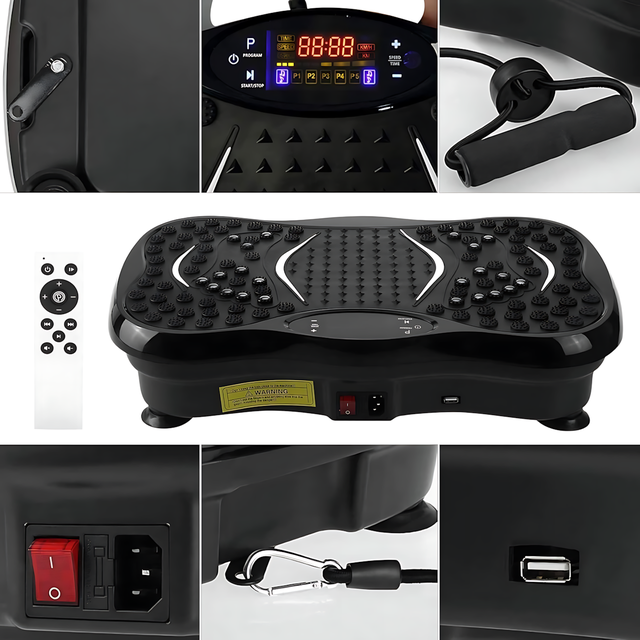Виброплатформа для похудения с LED-дисплеем и Bluetooth, до 150 кг, 99 уровней, с эспандерами и петлями, фитнес-платформа для дома