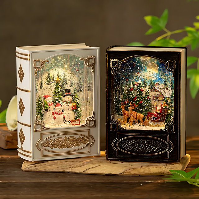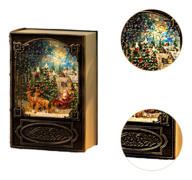 Винтажный ночник Xmas WDL 24023B — это атмосферный рождественский светильник в виде книги, который дополнит любой интерьер праздничным очарованием. С эффектом метели, этот ночник создает уютное свечение, а падающие снежинки напоминают волшебство зимних праздников. Встроенная музыкальная функция позволяет включать собственные мелодии через USB, создавая индивидуальное праздничное настроение. Коричневый цвет корпуса и винтажный стиль делают светильник не только источником света, но и стильным элементом декора.