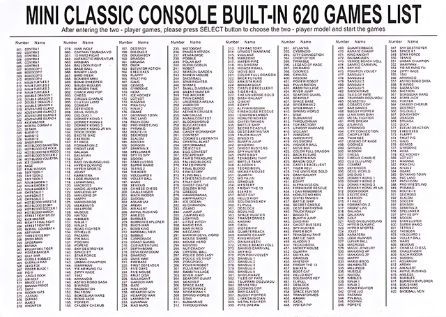 - Консоль с 620 встроенными играми;