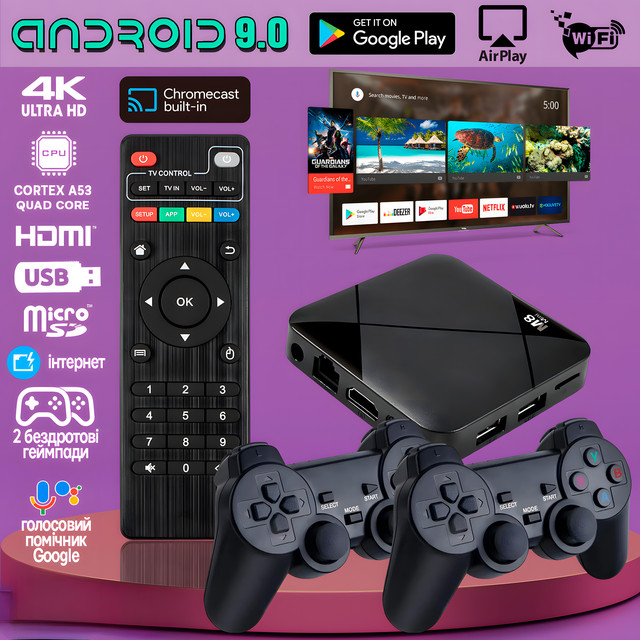 Игровая приставка M8 mini 4K Android TV, 64 gb , с встроенным эмулятором ретро-игр и джойстиками