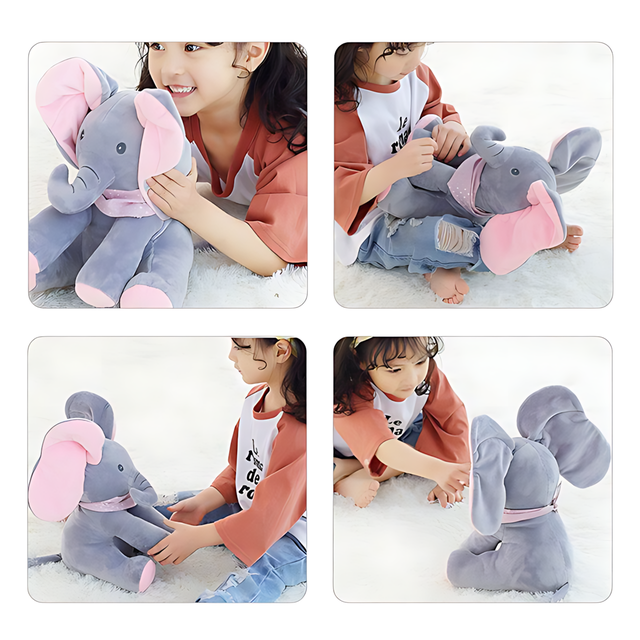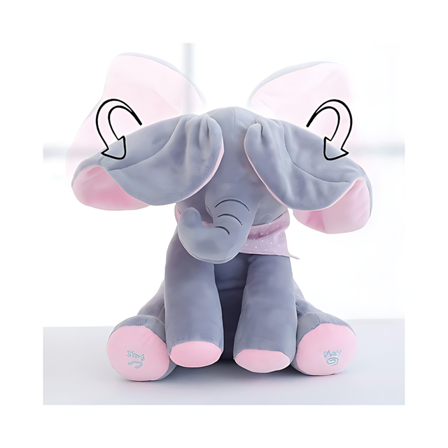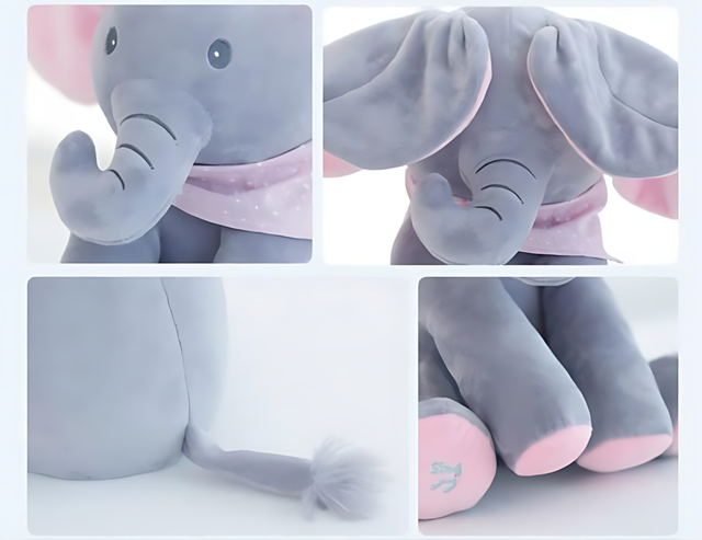 - Игра в прятки: Слонёнок хлопает большими пушистыми ушками, прячась и появляясь, что вызывает улыбки и восторг у малышей;