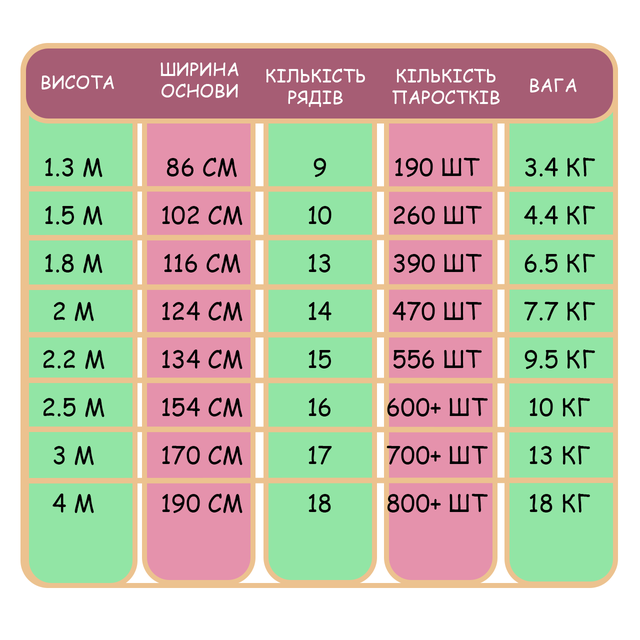 - Количество отростков: 190 шт / 260 шт / 390 шт / 470 шт 556 шт/ 600+ шт;