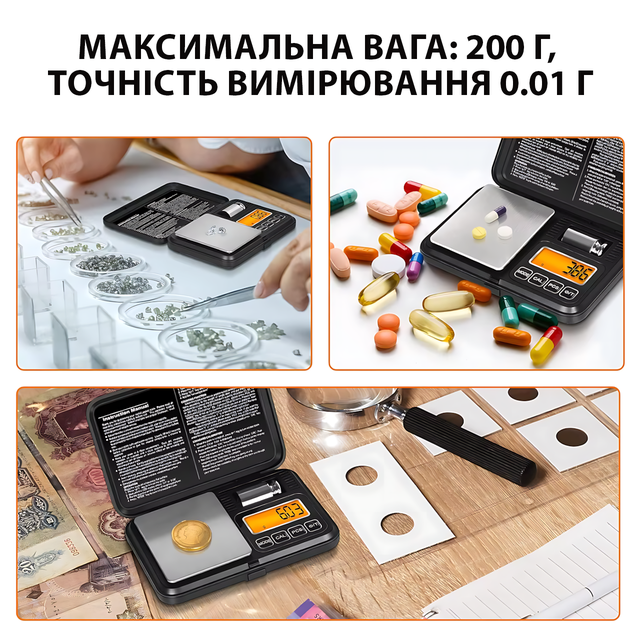 Ювелирные электронные весы WB-200 — точность 0.01 г, до 200 г, с крышкой, ЖК-дисплей с подсветкой, 6 единиц измерения, TARE-функция