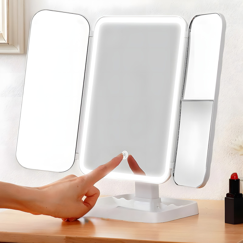 - Тройное зеркало для макияжа LED XW-810, С подсветкой, 2000 мАч;